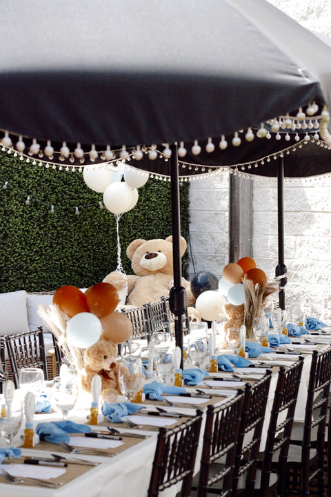 We decked out the venue with a baby blue accents, teddy bears galore, and the cutest little teddy-shaped honey bottle party favors. Every detail was thoughtfully crafted to create a whimsical, heartwarming atmosphere. It was a delightful event, filled with love and anticipation for the little one's arrival. The mom-to-be was over the moon, and the guests couldn't stop gushing about the charming setup.